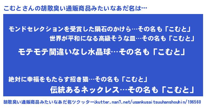 | ヒーロー風カッコイイあだ名 | 『スーパーコムト』『慈愛の使者こむと』 |
