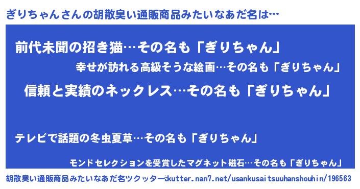 | ヘコむあだ名 | 『ぎり太郎』『ぎりちゃん(震え声)』 |