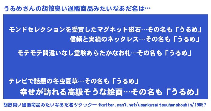 | ヒーロー風カッコイイあだ名 | 『スーパーウルメ』『友情の使者うるめ』 |
