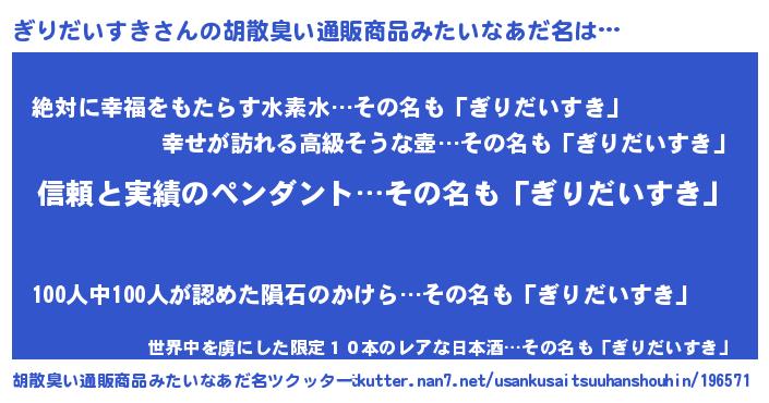 | ヘコむあだ名 | 『ぎりっぺ』『ぎりだいすき(苦笑)』 |