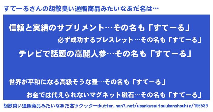 | ピコ太郎風あだ名 | 『ステ次郎』『スス太郎』『スコ史郎』 |