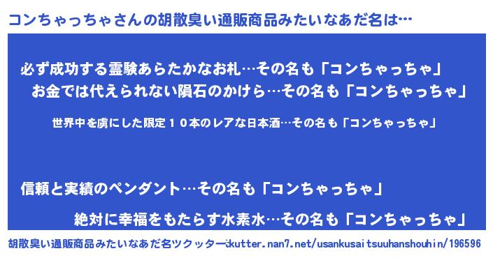 | 意味不明あだ名 | 『住所不定無職コンちゃっちゃ(50歳)』 |