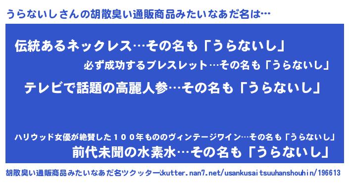 | 意味不明あだ名 | 『自称うらないし』『永久保存うらないし』 |
