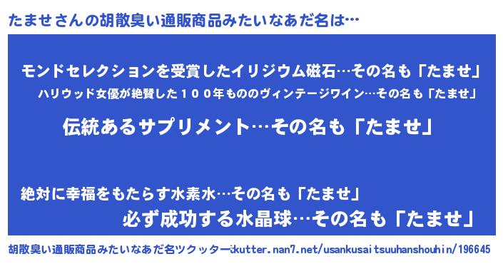 | 意味不明あだ名 | 『とにかく怪しいたませ』 |