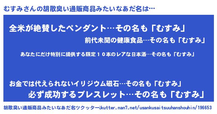 | 意味不明あだ名 | 『住所不定無職むすみ(56歳)』 |