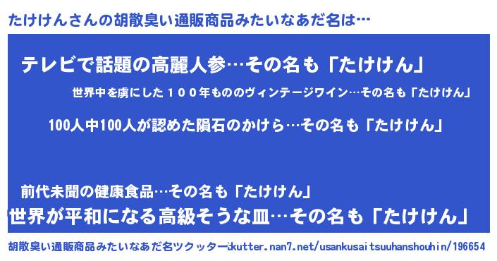 | 意味不明あだ名 | 『眠気覚ましガムたけけん味』 |