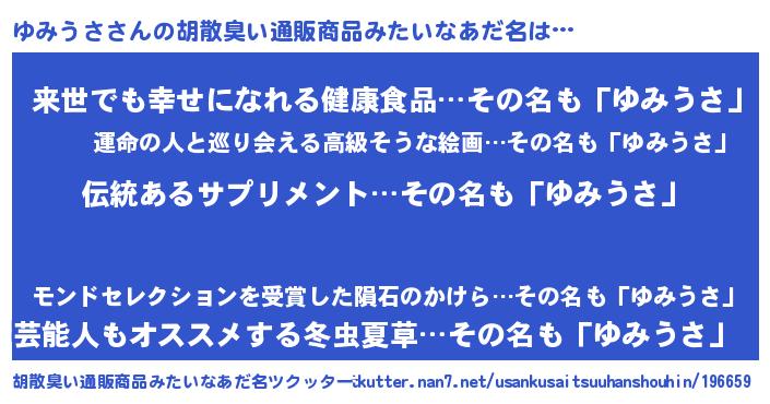 | 意味不明あだ名 | 『とにかく怪しいゆみうさ』 |