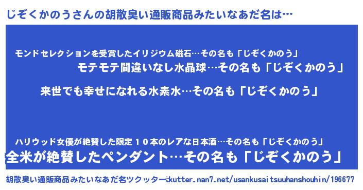 | ヘコむあだ名 | 『じぞくかのう(遠い目)』『じぞぷりん』 |