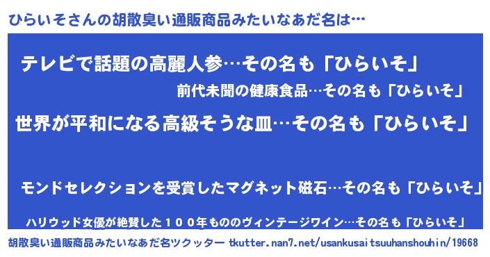 | 意味不明あだ名 | 『ひらいそフォーエバー』『自称ひらいそ』 |