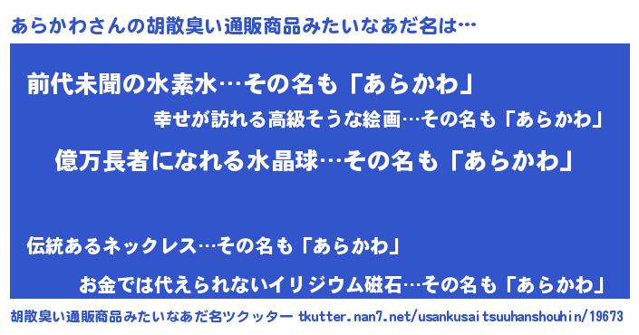 | ヘコむあだ名 | 『あらにゅー』『あらかわ(笑)』 |