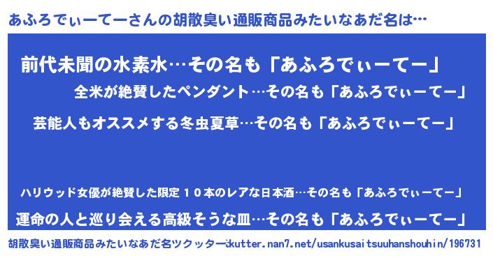 | 伝説のあだ名 | 『古文書に記された勇者あふろでぃーてー』 |
