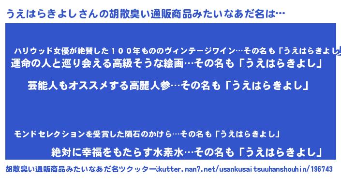 | 肩書あだ名 | 『うえはらきよし大佐』 |