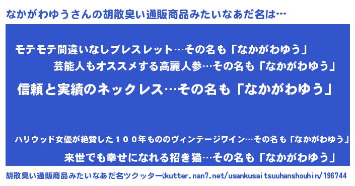 なかがわゆうさんの胡散臭い通販商品みたいなあだ名をツクッター!