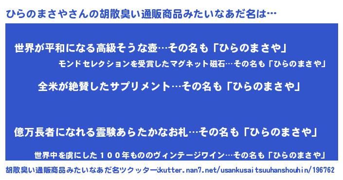 | 肩書あだ名 | 『ひらのまさやマネージャー』 |