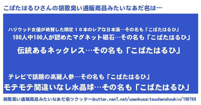 | 意味不明あだ名 | 『とにかく怪しいこばたはるひ』 |