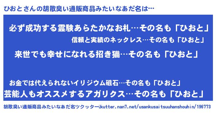 | ヘコむあだ名 | 『ひおと(笑)』『ひおっふぃ~』 |