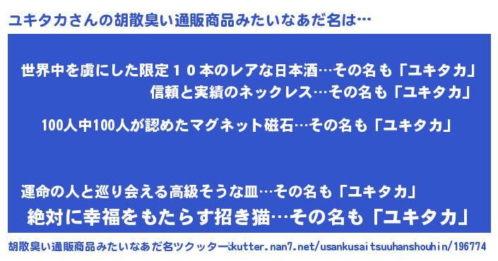 | 欧米人風あだ名 | 『ダニエルユキタカ』『ウサインユキタカ』 |