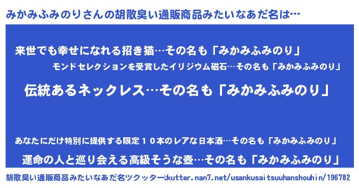 | 可愛いあだ名 | 『みっかぃー』『みかみふみのりママ』 |