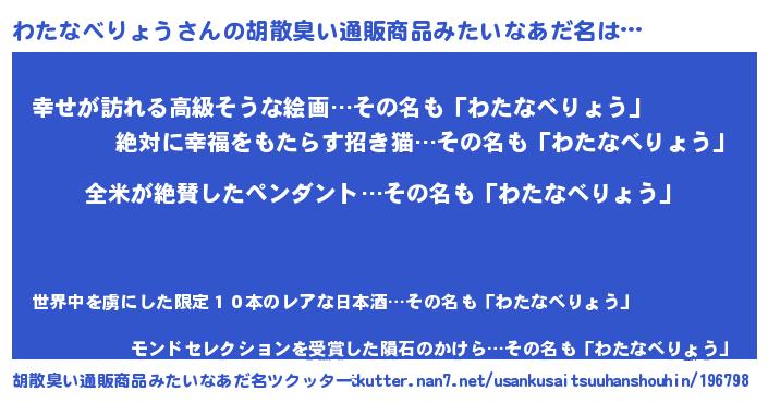 | 欧米人風あだ名 | 『ウサインわたなべりょう』 |