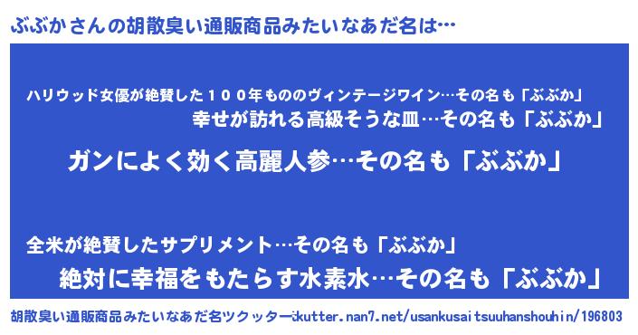 | ヘコむあだ名 | 『ぶぶか(小並感)』『つくし』 |