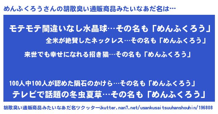 | 意味不明あだ名 | 『永久保存めんふくろう』 |
