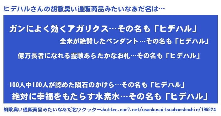 | ヘコむあだ名 | 『ヒデもー』『ヒデハル(笑)』 |
