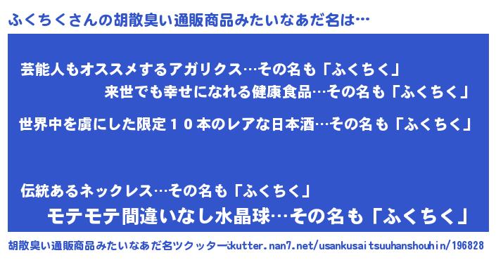 | 意味不明あだ名 | 『住所不定無職ふくちく(14歳)』 |