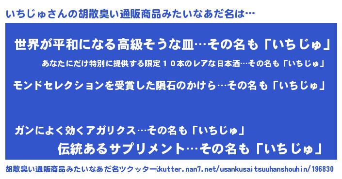 | 男性向けラノベタイトル風あだ名 | 『いちじゅに滅ぼされるだけの簡単なお仕事です』 |