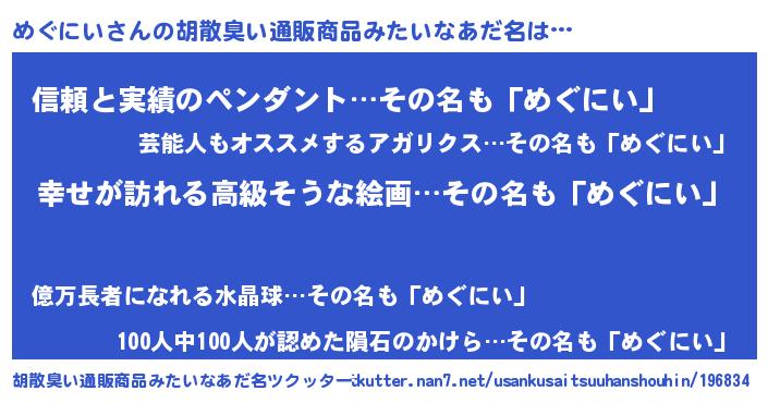 | 欧米人風あだ名 | 『アンジェラ・めぐにい』 |
