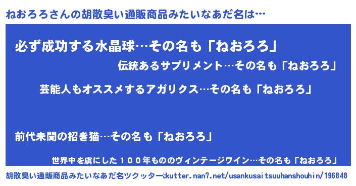 | 意味不明あだ名 | 『自称ねおろろ』『ペロリンねおろろ』 |