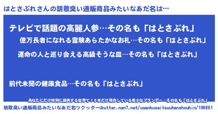 | ヒーロー風カッコイイあだ名 | 『ウルトラはとさぶれマン』 |