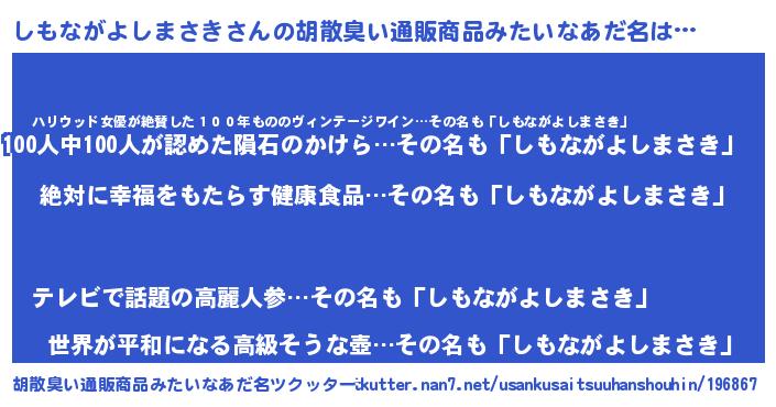 | ヘコむあだ名 | 『しもながよしまさき(笑)』『つくし』 |