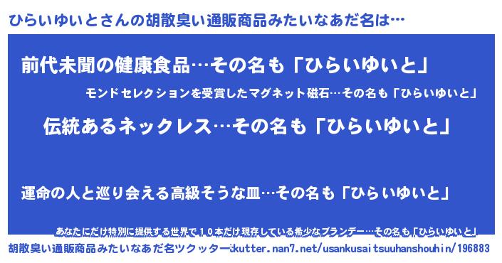 | 意味不明あだ名 | 『とにかく怪しいひらいゆいと』 |