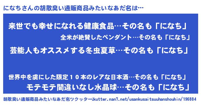 | 意味不明あだ名 | 『自称になち』『永久保存になち』 |