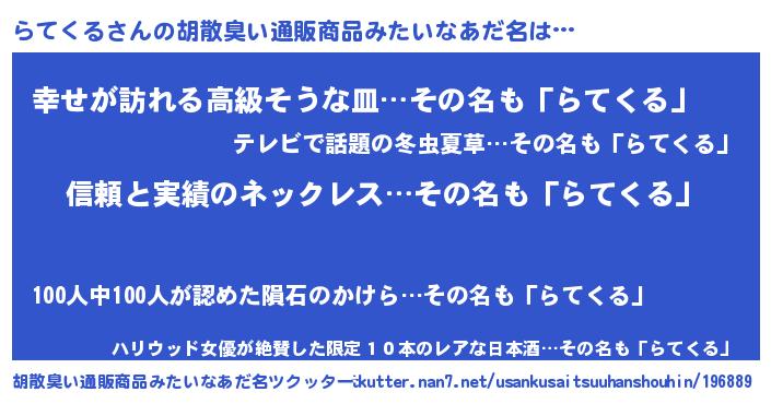 | 意味不明あだ名 | 『とにかく怪しいらてくる』 |