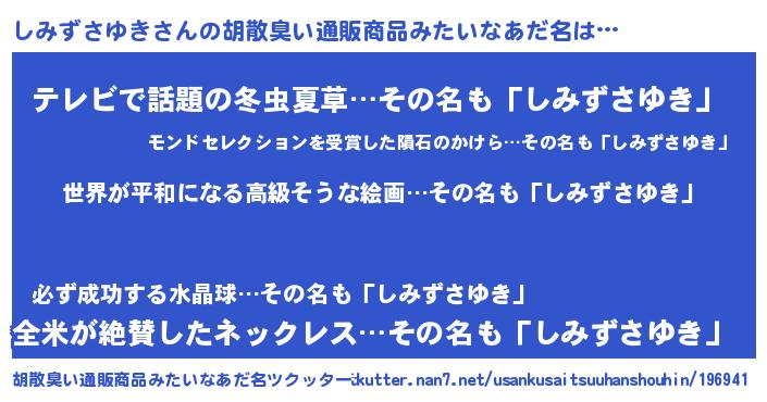 ファンタジー風あだ名 | 『エターナルシミズサユキー』 |