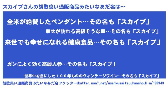 | ヘコむあだ名 | 『スカイプ(笑)』『スカっちょ』 |