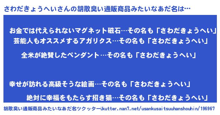 | ヘコむあだ名 | 『さわっちょ』『さわだきょうへい(苦笑)』 |