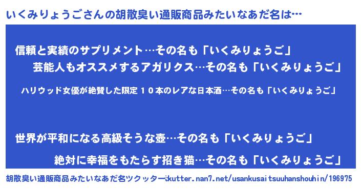 | 意味不明あだ名 | 『住所不定無職いくみりょうご(59歳)』 |