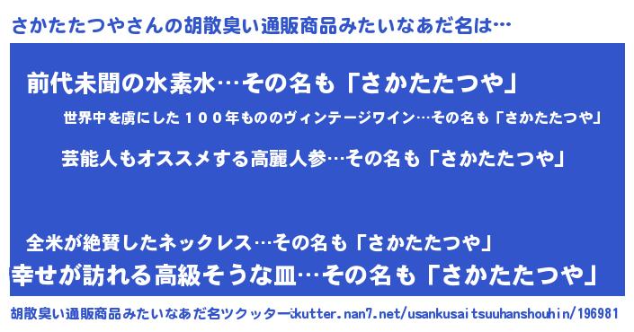 | 意味不明あだ名 | 『自称さかたたつや』 |
