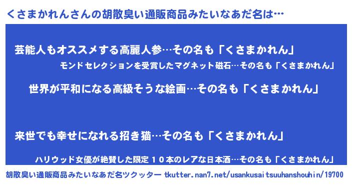 | 意味不明あだ名 | 『くさまかれんフォーエバー』 |