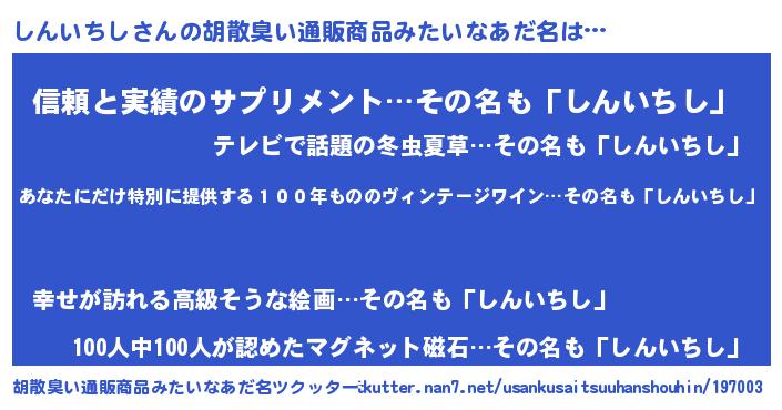 | 意味不明あだ名 | 『住所不定無職しんいちし(6歳)』 |