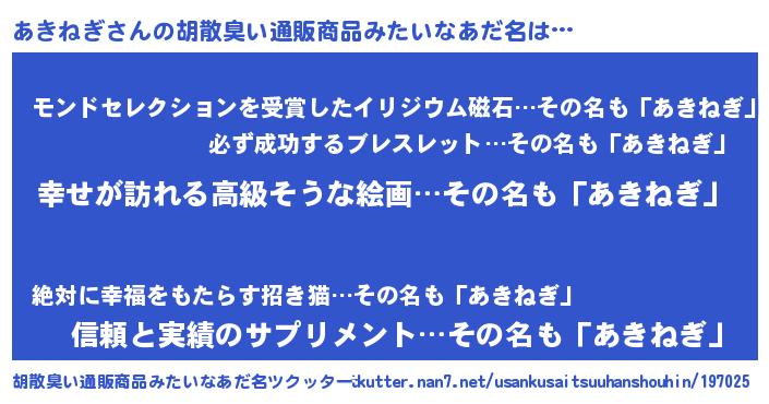 | 肩書あだ名 | 『あきねぎ大佐』『あきねぎ大統領』 |