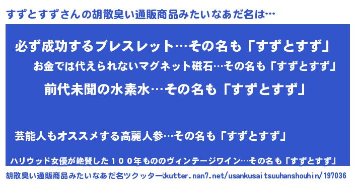 | ヒーロー風カッコイイあだ名 | 『ネオスズトスズ』『スーパースズトスズ』 |