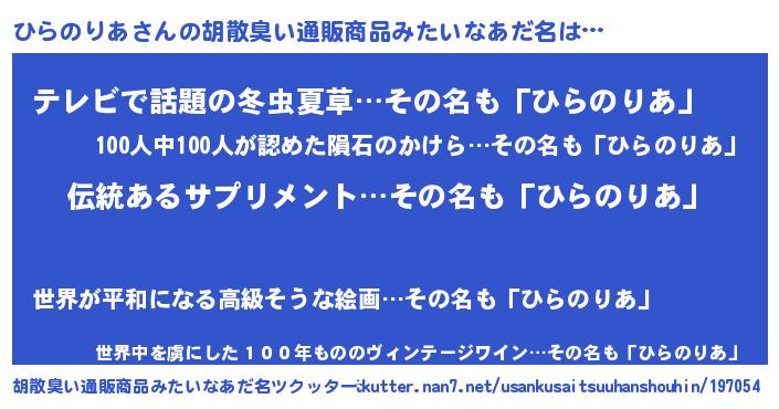 | 意味不明あだ名 | 『とにかく怪しいひらのりあ』 |