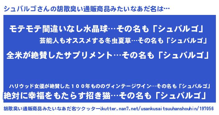 | ヒーロー風カッコイイあだ名 | 『炎刃騎士シュ』『スーパーシュバルゴ』 |