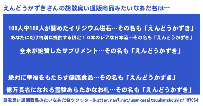 | 意味不明あだ名 | 『とにかく怪しいえんどうかずき』 |