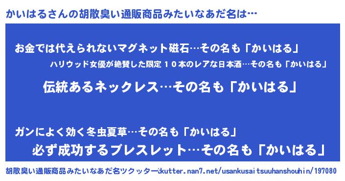 | 肩書あだ名 | 『かいはる班長』『かいはる助教授』 |