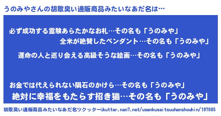 | 肩書あだ名 | 『うのみや総理大臣』『うのみや船長』 |