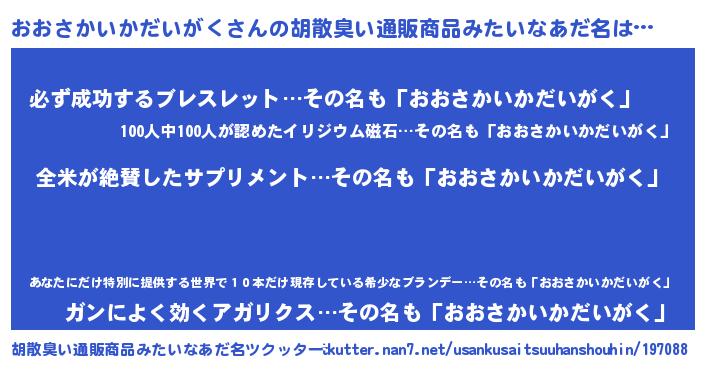 | 伝説のあだ名 | 『覚醒した魔法使いおおさかいかだいがく』 |